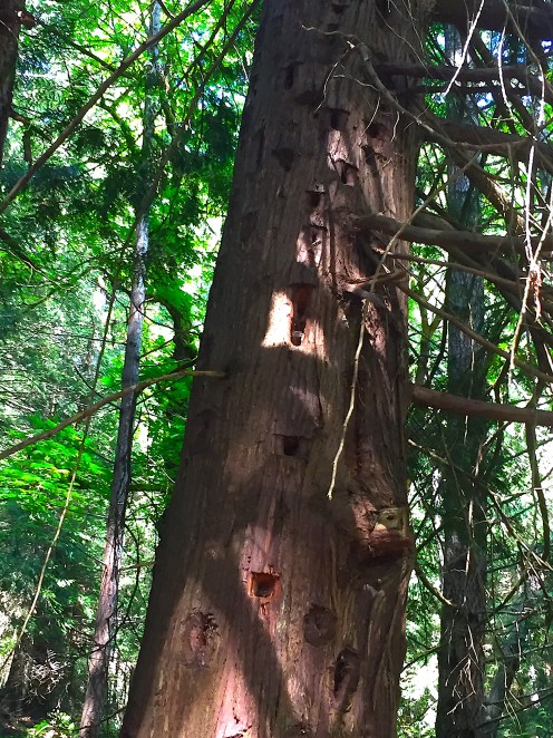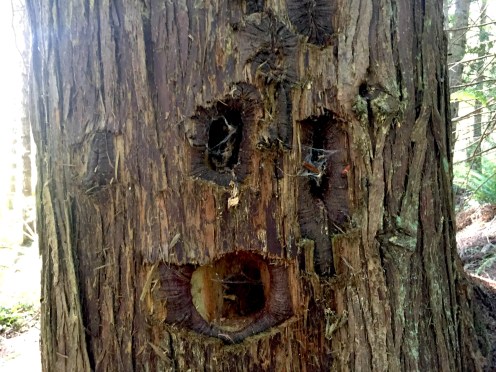 I had no idea until an earlier walk with Joe that pileated woodpeckers made square or rectangular holes in trees. This particular tree has so many that I have dubbed it the woodpecker condo. What’s truly fascinating is the way the tree repairs the damage.