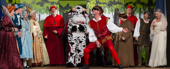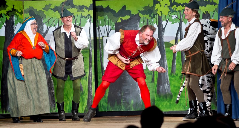 I figured I’d done my bit, that it would be someone else’s turn to direct in 2015. By April the silence (lack of offers) became deafening, so I decided to see what other pantos this Robin Bailes had written. Turned out there were a number, including Robin Hood and his Merry Men and The Return of Robin Hood. I ordered copies of both scripts. While I actually liked the latter more than the former, clearly the second could not be staged before the first. To the delight of the board, I told them I would be willing to direct not just the 2015 panto, but the 2016 as well.