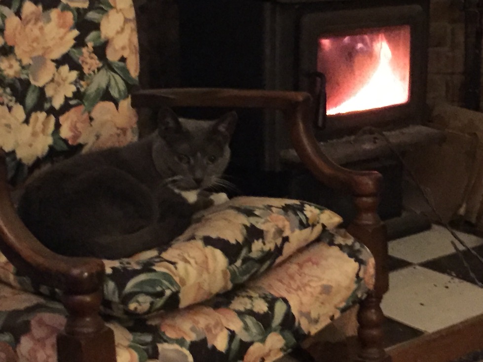 In the winter, this is Stella’s favourite chair. Hardly surprising, given its proximity to the fire. She was not best pleased when I moved the chair in December to put up the skinniest Christmas tree ever. Since the removal of said tree and the repositioning of this chair beside the fire, Stella only gets out of it to eat and use the litter box (occasionally deigning to join me on the sofa or when I’m reading in bed). This time of year she pretty much lives in this chair – as the amount of fur I regularly remove attests.