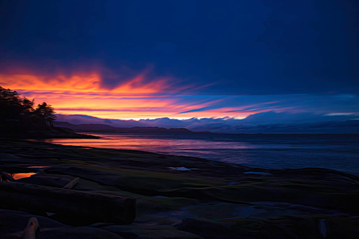 Home briefly before heading out once again for another social engagement. Time for my friend Jean and I to have a welcome home meal at the lodge with the recently-returned-to-the-island (now suitably quarantined) Cec and Joyce. Yes, Mr Fixit is back! (And his lovely wife, who’s already been roped into taking part in the other one-act play to be performed online this spring.) Dinner at 6pm, so it’s still light outside, but the star of the show will soon appear.