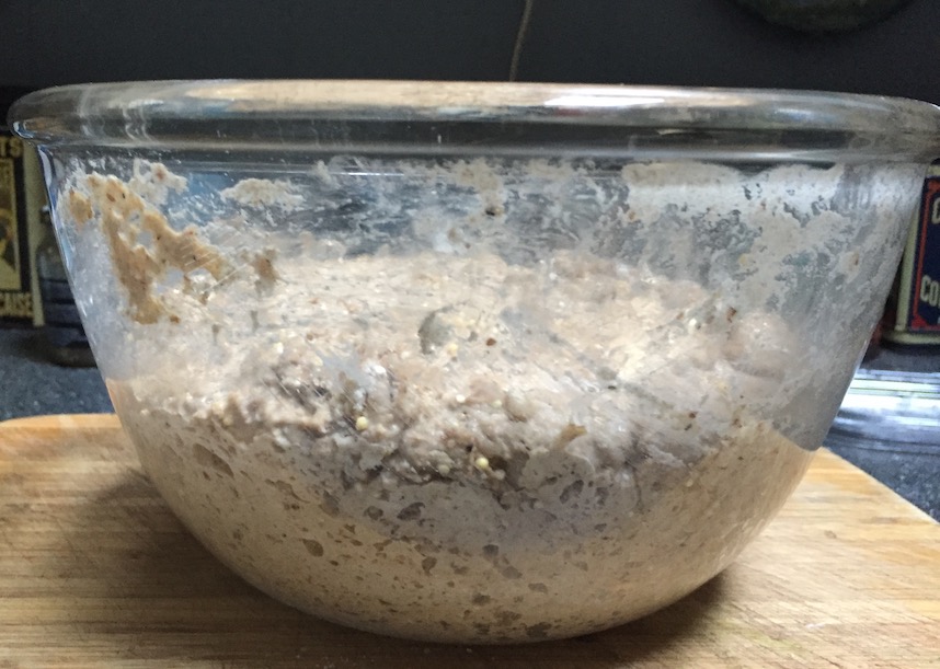 Before going to bed I mixed up a batch of dough and threw a tea towel over it. After eight hours the dough should have risen to fill up the entire bowl. When I took the tea towel off the next morning this is what I saw.