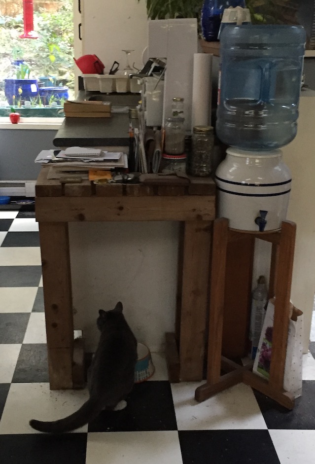 A couple of years ago, in order to provide myself with a bit more counter space in the kitchen, I hauled a small table out of the shed and moved it into the house.