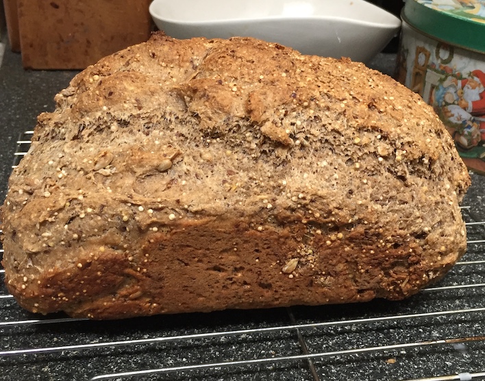 The bread is dense and moist (dare I suggest not completely cooked?). It tastes okay, but clearly something is not right. When Jane suggested the Bulk Barn twelve-grain flour, I did ask if she thought it would work with her basic recipe. She assured me that any flour should work, although I might need to make some adjustments. Easy for her (a dedicated baker) to say. Obviously some adjustment is required, but bugger me if I know what. I love this recipe because I thought it was completely fool proof. As I freely admit, I am a complete fool when it comes to baking, I have no idea what adjustment I’m supposed to make. I used, as instructed, half a teaspoon of sugar and half a teaspoon of yeast. More yeast? Less yeast? More sugar? Less sugar? I have no fucking idea.