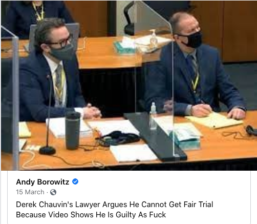 Unfortunately, this is the United States. All it would have taken was one juror holding out, but no one did. There were no messages from the deliberation room requesting clarification from the judge on any point of law. They’d watched the video of Floyd’s murder. They’d listened to the evidence – including the damning testimony by his superior and fellow officers which was such a heart-warming break from similar trials past. And they reached the only conclusion they could: that this piece of shit policeman was guilty as fuck.