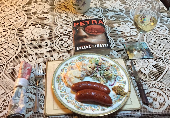 Make myself some dinner. Too bloody hot to cook anything, so it’s deli salads and smokies, consumed with Shaena Lambert’s wonderful novel about Petra Kelly, the first leader of the German Green party.
