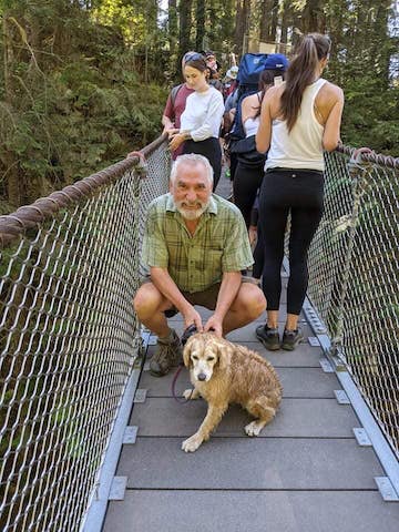 Georgie with Joe (and a lot of other people) on one of the north shore suspension bridges.