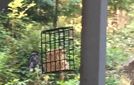 For some years I’ve had a bird feeder hanging here.