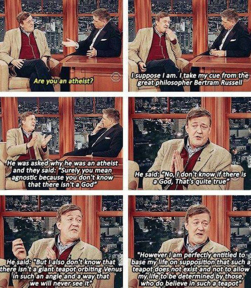 As a friend commented when I shared this on Facebook, “Bertram Russell?” Indeed. Apparently you can’t get good transcribers these days. But that aside, my philosophy exactly. Keep your giant teapot. I want no part of it.