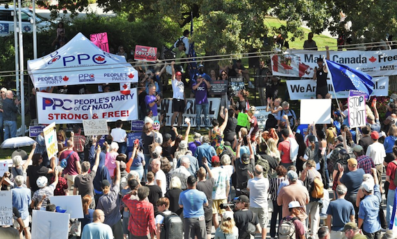 Whilst not protesting at hospitals and Liberal rallies, many anti-vaxxers have decided Mr Potato Head isn’t rabid enough for them they have been rallying around the People’s Part of Canada (which could easily pass for the National Front in the UK or France).