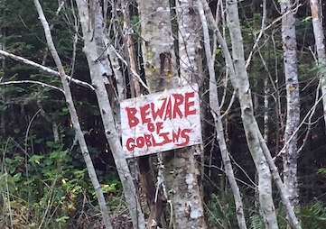 Good to know. Georgie ignores the sign and starts searching, but fails to find any goblins.