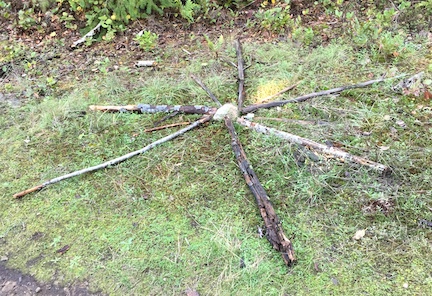 First, who built the stone pile on this stump. Second, there was enough life left after it was cut down for the tree to start trying to repair the damage by covering the wound in bark.