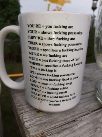 Today’s issue is not on the mug, despite being one of the most regularly made mistakes. And the one that drives me craziest.