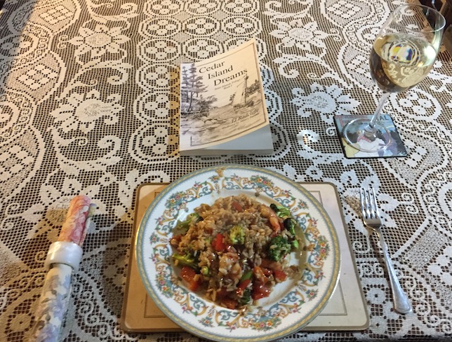 This Sunday (on Monday) dinner was shared with T J Radcliffe, who’s written a trilogy of books, set on the Gulf islands and the surrounding water in a post-human world where mammals and birds have learnt to speak to one another.