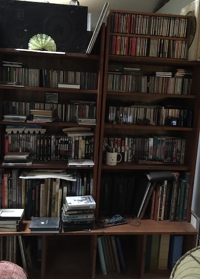 Ha, ha. I fell for this mixed media piece by an artist I actually know. And I could just about afford it. But where the hell could I put it? Well, there was one spot. On the other side of this bookcase.