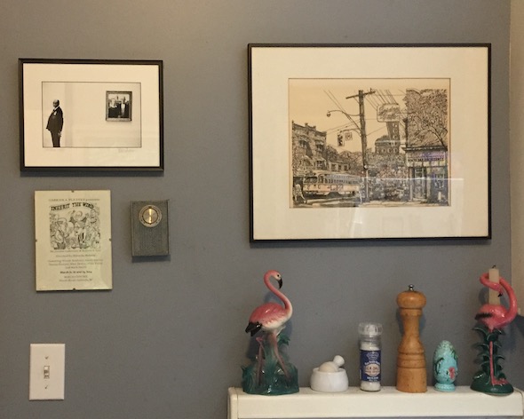It hangs in the kitchen above a framed flyer for Inherit the Wind.