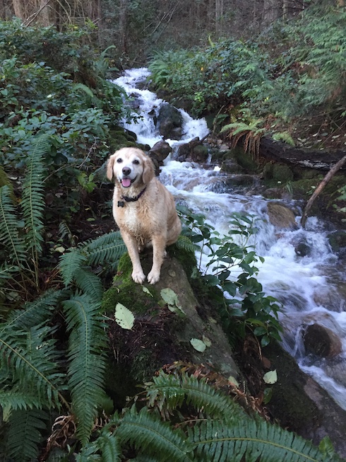 Georgie, of course, doesn’t mind getting wet from head to toe. Really stern stuff. She can run straight through the ponds, unlike me, who now has to hobble through with my left foot in the water and my right on the bank.