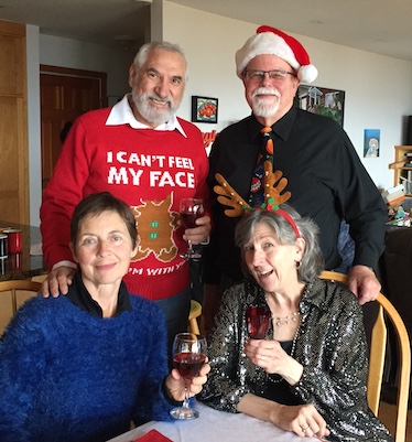 I’d put a message on the Facebook Community Bulletin Board asking if anyone had a Christmas jumper we could borrow, but no one came forward. I thought I was going to have to give up on this costume item. Then, when I mentioned my hunt to a friend, he produced this wonderfully ridiculous article of clothing. (Underneath the headless gingerbread man it says “When I’m with you.”)