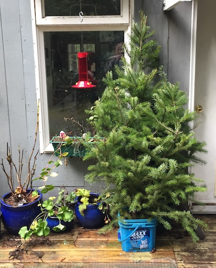 After five (or is it six?) days, it’s probably time to get the Christmas tree out of the bucket out back and into the house.