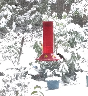 It’s so cold it takes most of the day for the woodstove to properly heat the house and no time at all for the nectar in the hummingbird feeders to freeze.