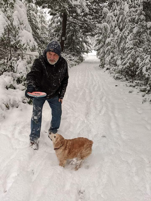 Elsewhere on the island, Joe, whose daughter Emily is visiting for the holidays, has been having fun in the snow with Georgie.