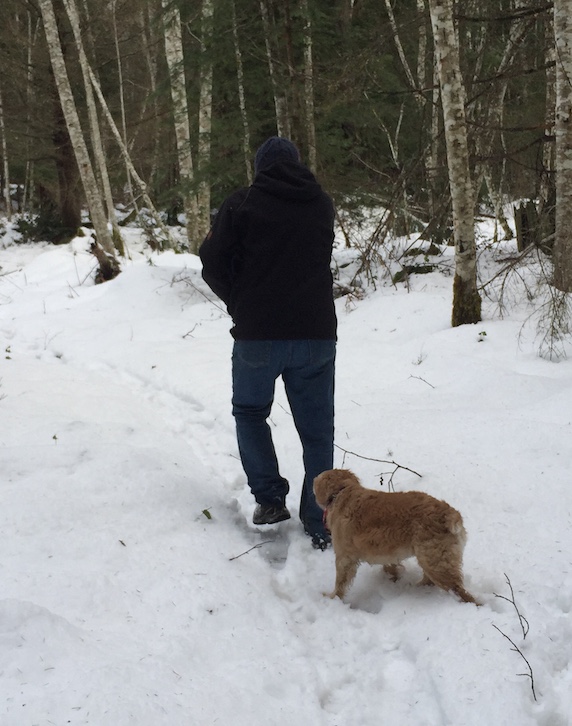 It wasn’t a slosh through the slush yesterday with Georgie and Joe. It was a trudge through wet snow.