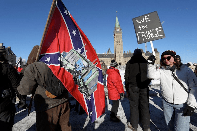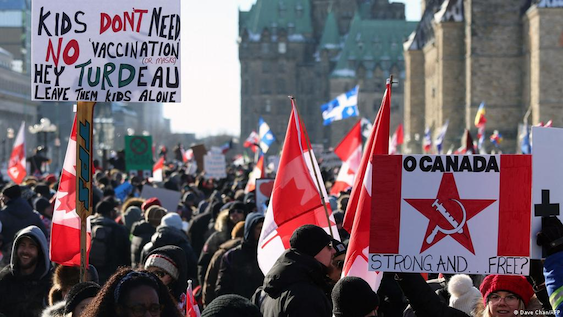 Meanwhile, in Canada, Erin the Tool, leader of the Conservative opposition refuses to denounce the anti-vax convoy and its racist camp followers for fear of driving them into the welcoming arms of the openly xenophobic People’s Party.