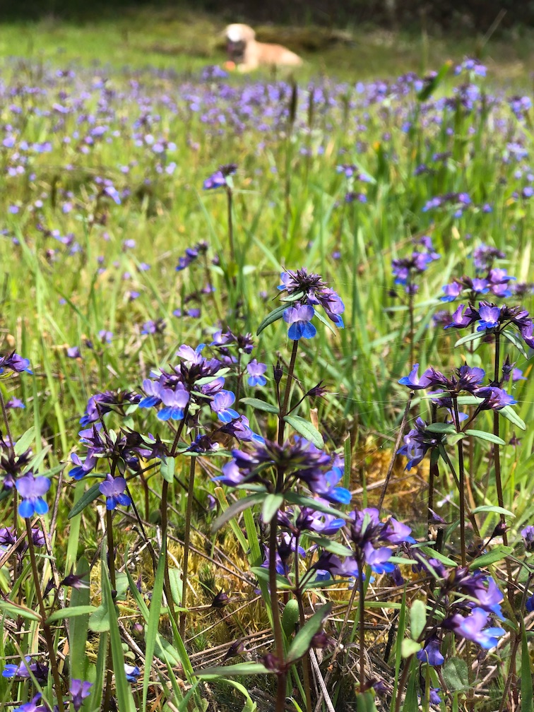 One of the highlights of yesterday’s walk was emerging from woods into a field absolutely covered in beautiful purplish blue (or bluish purple) wildflowers. Wish I could take the credit for this photo, but it was taken by Joe.