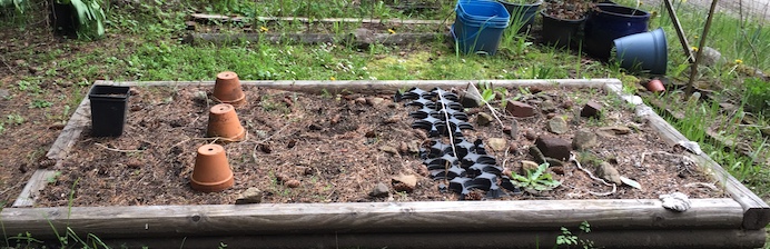 Not a lot of worms in the raised bed. I think I spotted one. But there were loads in the cherry tomato bed, which is encouraging.