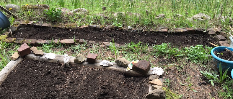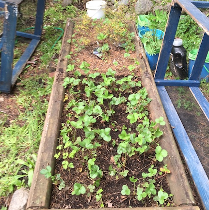 An encouraging number of flowers on the strawberries, a reasonable number of flowers on one (of six) of the blueberry plants. One of the new raspberry plants I put in last year is dead, as, I suspect, are the black currants. (I only put the black currants in because they are never to be found in the shop or markets and there is a particular recipe I wanted to use them for. They’ve never produced enough fruit to actually make said recipe, so no great loss.)