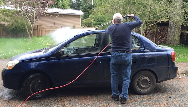 Washing the car used to be one of Mike’s jobs. My attitude, as I may have previously noted, is once a year (after the pollen’s stopped dropping), whether it needs it or not. (Sort of like haircuts.) One the rare occasions when I’m going on a road trip, I might wash it twice. Might.