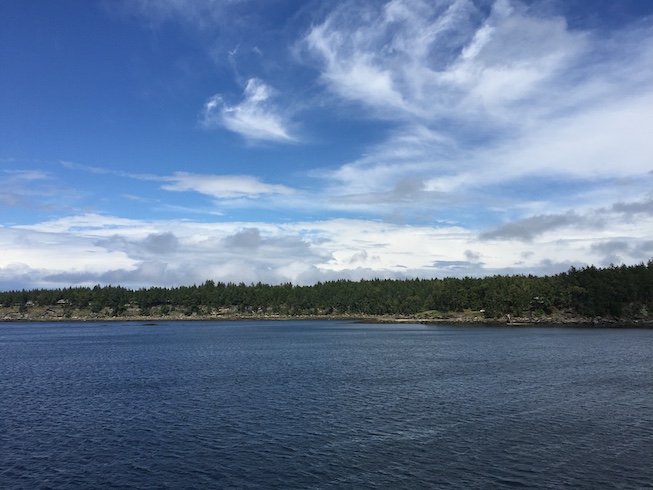 Normally, on the rare occasions when I am compelled to go to town, I stay in the car and read during the 20 minute trip. Yesterday it was drizzling when I left the house, but the sun came out as the ferry departed.
