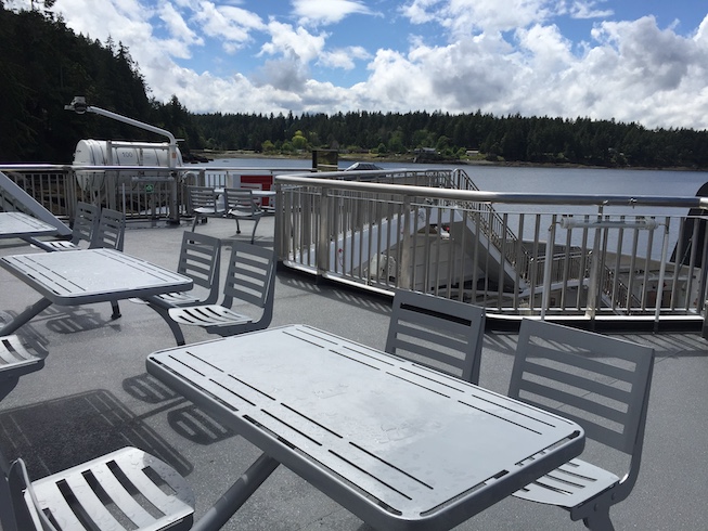 Forced (because I couldn’t persuade anyone else to do the errand) to go into town yesterday for the first time this year. On the plus side, I got to check out one of the new ferries that in April replaced our much loved and often denigrated geriatric ferry.
