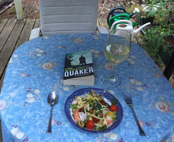 Night before flight dinner with Liam (son of William) McIlvanney. Just started it, but so far so good. Ordered because both Ann Cleeves and Val McDermid bigged it up on Twitter. Picked from the bedside pile because it’s a paperback, so good for travel. (Do also have some e-books on tablet for trains.)