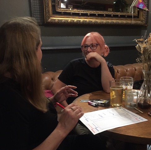 Unfortunately the kitchen at the Albert is closed, forcing us to head off in search of another pub with real ale. Arrive at New Cross House which, it turns out, only has craft beers. (Honestly, stupid young people and their craze for flowery beer.) We are about to leave when we’re told a pub quiz is about to start. Okay, that could be fun. I could put up with craft beer for that.