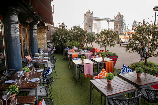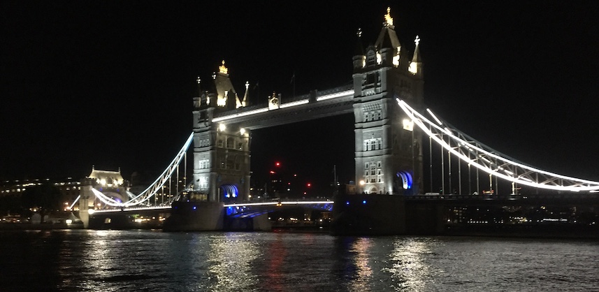 I thought I’d left plenty of time to walk from Waterloo to Tower Bridge to meet Becky for dinner at Cantina del Ponte, but it was further than I remembered. She was there quite a while before me and thus got the seat with this view.