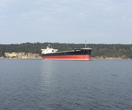 Awaiting word from the Port of Vancouver that their cargo is ready for loading freighters drop anchor and leave a skeleton crew onboard with generators running 24/7. And there they sit for days, sometimes weeks, occasionally months. A private member’s bill introduced in 2020 by a Vancouver Island MP with the aim of addressing concerns failed (as most private member’s bills do) to become law.
