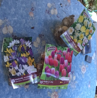 A new batch of mixed crocus bulbs for the window boxes. The only ones that have flowered for the past couple of years have been the white ones. I don’t have anything against white croci, but, come on, where are the purple ones?