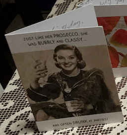 Two cards that mentioned bubbly (one of which contained money for purchase of same!).