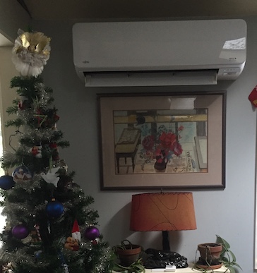 Yes, after spending close to $5000 on a heat pump all I could think about was the bloody good holiday I could have had with that money. Not that there was really anywhere else it could go, but this (directly above the chair where I read and facing the spot on the sofa where I sit to watch telly) was not a good spot. I thought it would be nice to have warm air blowing on me, but that’s not exactly what happens. If I put it on the sideways fan mode, it blows warm air in one direction and cool air on the way back. If I don’t put the fan on and I’m sitting on the sofa, my left arm and head are warm, but my right hand is not. And when it reaches the requisite temperature it doesn’t just stop for a while, it blows cool air until it needs to start heating again.