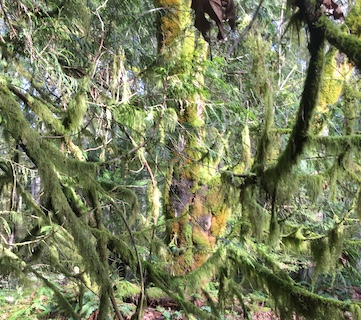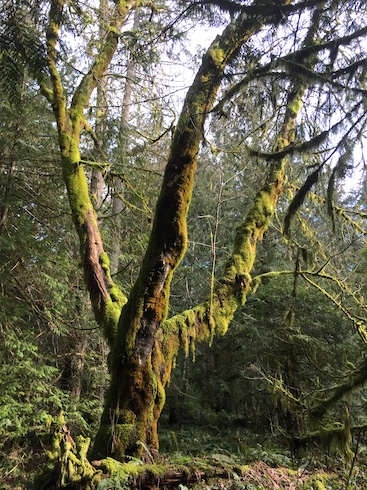 Rainforest, you ask? Am I in Costa Rica or something? No I am not. I’m at home in the temperate rainforest. Well, that’s our official climate zone. There isn’t much that looks like a rainforest, but there is one area that does.