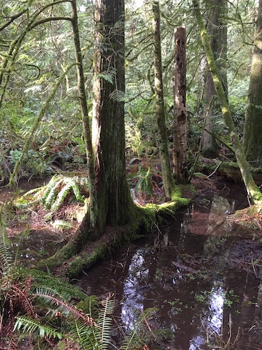 Rainforest, you ask? Am I in Costa Rica or something? No I am not. I’m at home in the temperate rainforest. Well, that’s our official climate zone. There isn’t much that looks like a rainforest, but there is one area that does.