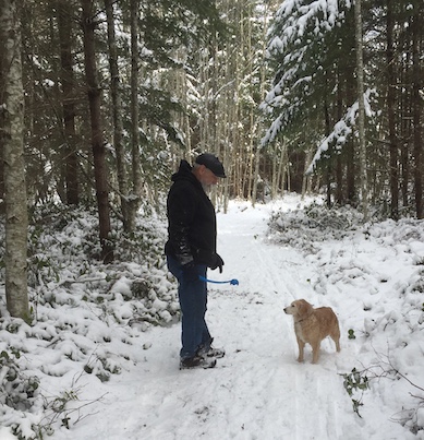 To my surprise, Joe brought the ball and hurler for Georgie. He was assuming, it seems, that if he kept his throws straight on to the trodden path it woul be fairly easy to see where the ball went. He assumed wrong. Ten minutes into our walk the ball hit a tiny cedar branch and veered off. After ten minutes of hopeless searching it was time to admit defeat and explain to Georgie that there would be no more ball throwing.