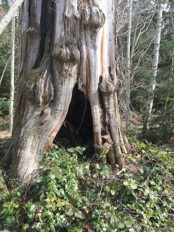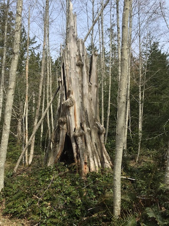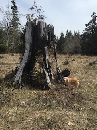 It was a good walk. A place we hadn’t been for a while, which he referred to as the tree graveyard – an old clearcut. Before you get to the “graveyard” the trail takes you past some very tall and interesting stumps.
