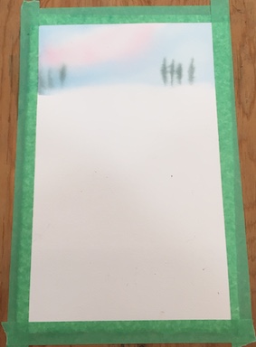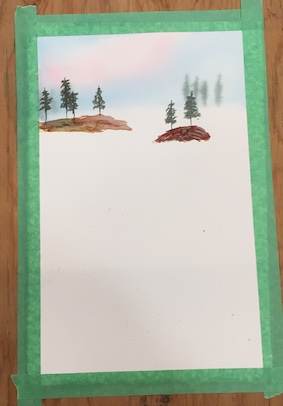 You start at the top with your sky and the trees in the distance.