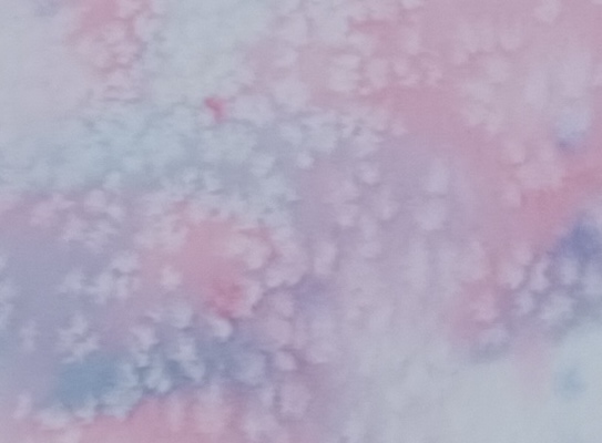 Then add a series of shapes in two different colours with wet brush. The instructor did leaf shapes. I opted for swirls, which were much larger and I freely admit less effective. Oh, well.