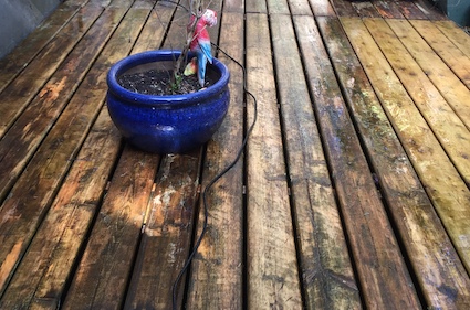If five of the deck planks look a lot cleaner than the others, that’s because you’ve forgotten (or weren’t around at the time) that two years ago Mr Fixit expanded the deck I’d originally had built ten years earlier.