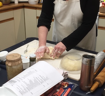 The good news was that I didn’t actually have to make the dough. Our master chef demonstrated and made big batches of basic dough (no sour cream) for everyone.