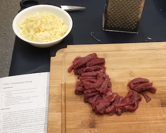 It was up to us to decide what filling we would choose. A list of possibilities was circulated with a note that there were limitless other options circulating on the internet. My eye was immediately drawn to this one. Philly cheesesteak filling. Ooh, cheesy! I do like cheesy things. As I said when I forwarded my decision.