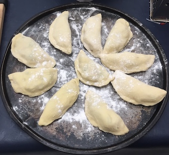 The idea was that everyone would make up to 12 of their pyrohies (is this, I wonder, the correct spelling of the plural?) so there would be some for everyone and some left over to take home.