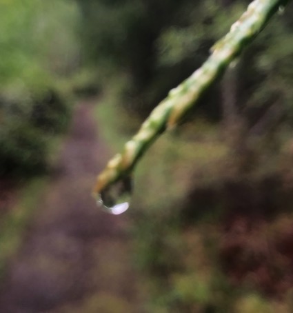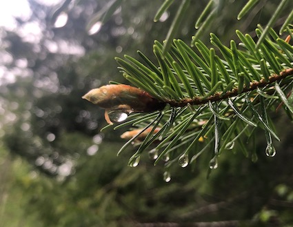 Rain jacket weather yesterday, but that was fine. There’s beauty everywhere every day in the woods. Like raindrops clinging before they drop.